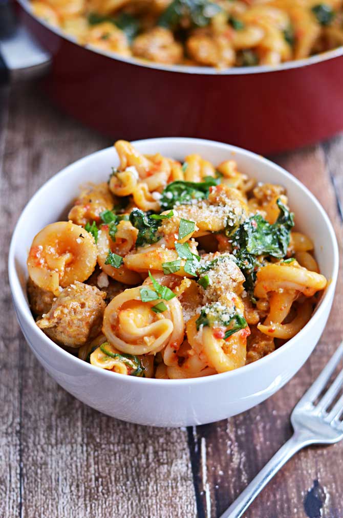 One-Pot Roasted Red Pepper and Sausage Alfredo