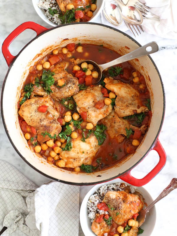 Once this is done, mix the chicken thighs together with the tomato mixture until they simmer. Cook for about 30 more minutes until the flavours mix and then it’ll be ready to serve. We recommend serving it along with some rice or quinoa (there are quite a few things you can do with quinoa too).