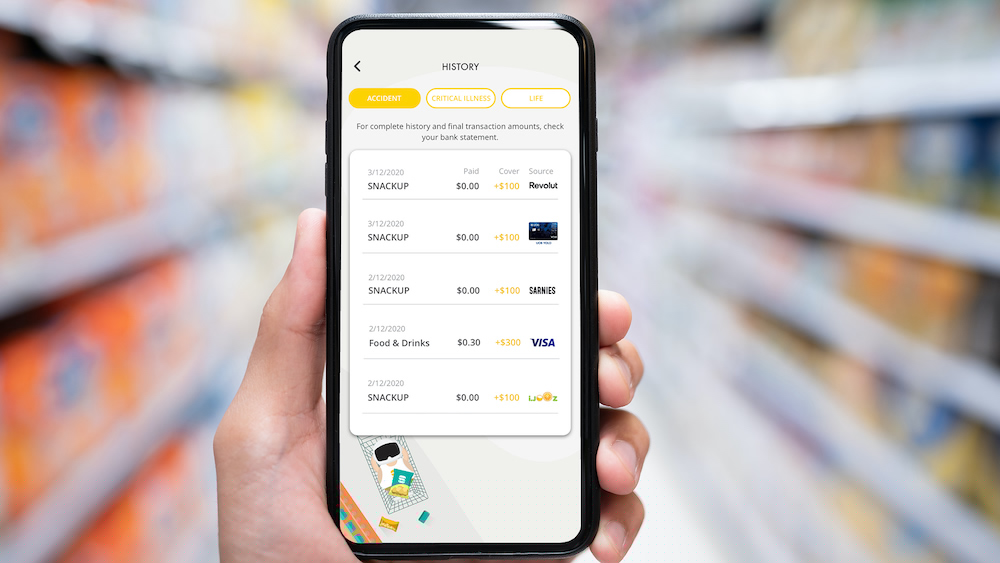 As of 3rd December 2020, SNACKUP, an exciting addition that allows you to build insurance coverage completely contributed by merchant and participating brands when you use Visa cards.