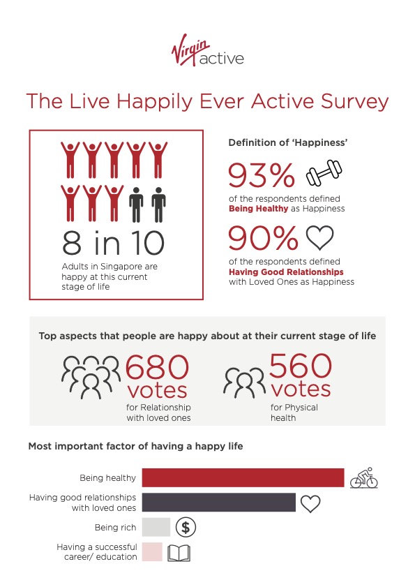 We hear a lot of stories about people having ‘cabin fever’, especially since dining-in at eateries were not allowed and working from home was the default. But how does this affect one’s happiness and what is the definition of happiness? Virgin Active, an international fitness chain, conducted a recent study to understand how happy people in Singapore are and how activeness has an impact on their physical and mental well-being.