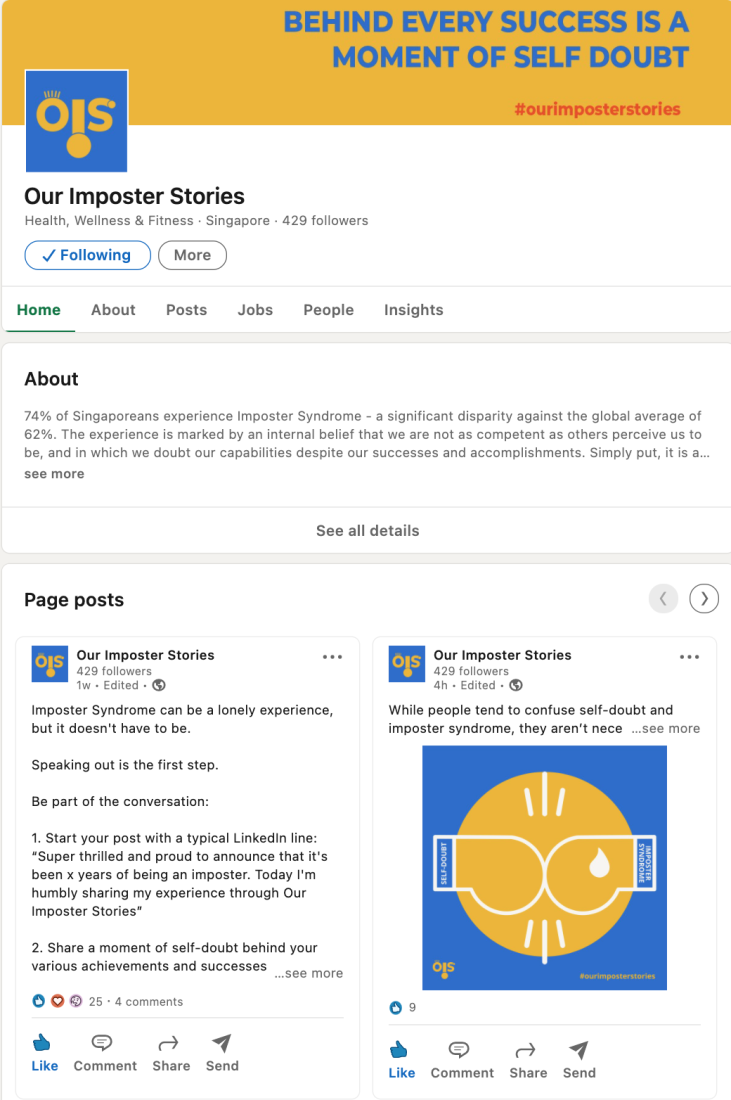 Since its launch yesterday, the campaign page @Our Imposter Stories on LinkedIn has seen prominent members of the public, such as Jamus Lim (MP, Sengkang GRC), Alvin Tan (Minister of State, MTI), Leanne Robers (Co-founder, She loves Tech) share their own experience with Imposter Syndrome, further reinforcing the idea that no matter how successful one is, we are all susceptible to self-doubt.
