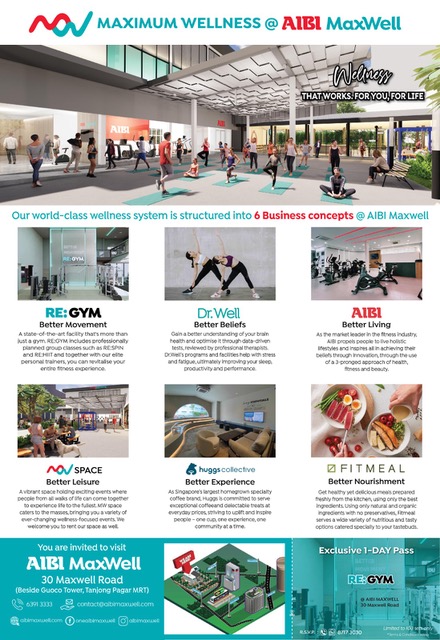 “The RSVP programme reflects the government’s efforts to partner with innovative businesses to optimise the use of State properties, in creative ways that will benefit the wider community. With its varied offerings and event programming, AIBI Maxwell will add on to Tanjong Pagar’s offerings and attract more people to meet and engage in health and wellness activities in this well-loved precinct,” said SLA’s Chief Executive Colin Low. “We look forward to AIBI Maxwell becoming a familiar destination for Singaporeans to work out and hang out with friends and family all year-round.”