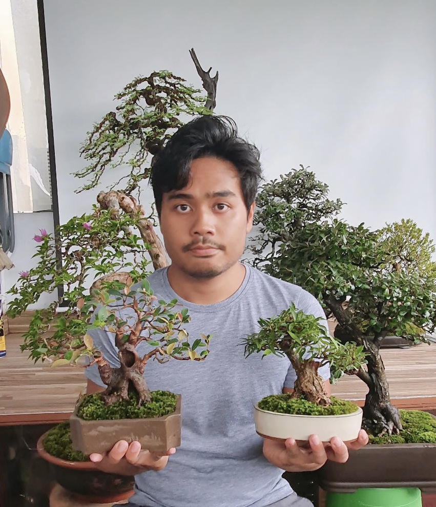 Niko and the first two bonsais in his collection