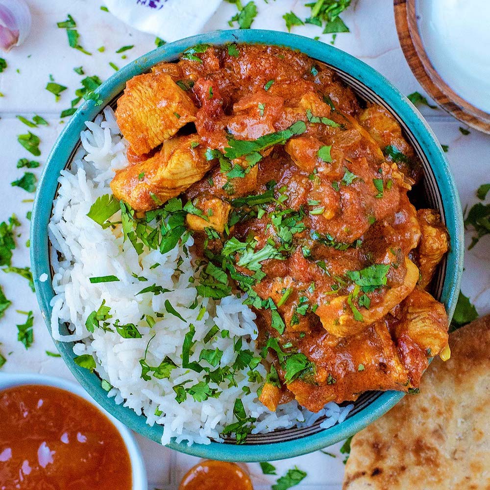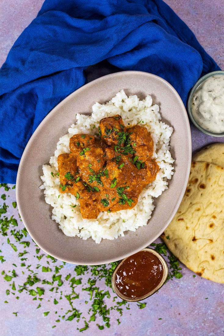 - Serve over rice or with naan, mango chutney and raita (all optional).