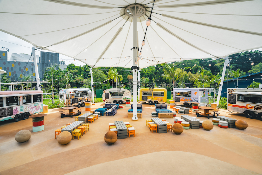 The Palawan @ Sentosa is conceptualised and developed to enable visitors to enjoy themselves sustainably in line with various environmentally friendly initiatives being piloted in the precinct. Crew uniforms and towels at Splash Tribe and +Twelve are made from a mix of recycled ocean plastic and organic cotton, obtained from OceanR, a company specialising in carbon-neutral clothing. In addition to HyperDrive’s fleet of electric Go-Karts with zero tailpipe emission, all food and beverage items at The Palawan Food Trucks will be served in 100% biodegradable and compostable food ware procured from Singapore-based TRIA.