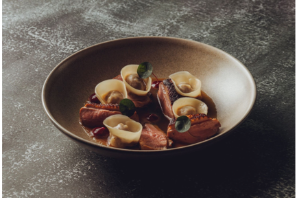 “The inspiration behind this dish comes from my childhood when my dad and I would often enjoy duck noodles together. This dish is a tribute to him,” explains Head Chef Danial Fitri Yap. “Pairing duck with shio koji not only tenderises the meat but also enhances its natural sweetness and umami flavours. The wantons, filled with duck and a hoisin marinade, honours the key ingredient, while the consommé is brewed using the remaining bones, underscoring our commitment to practising zero waste in our kitchens.”