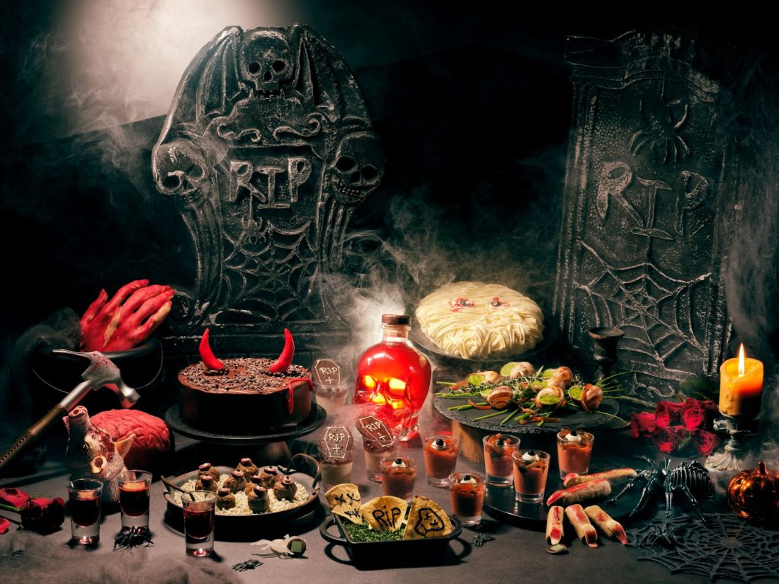 The culinary team at Lime Restaurant has crafted a wickedly delightful menu featuring eerie-looking yet delicious dishes like Chilled Tomato Gazpacho, Baked Escargot, and Graveyard Pork Meatballs. The Josper Grill station serves devilishly mouth-watering selections such as Black Pepper-crusted Wagyu Beef, Iberico Pork Ribs, Assorted Sausages, and River Prawn Skewers. Don’t miss the spine-tingling desserts, including Coconut and Raspberry Coffin Cake, Devil’s Food Cake, and more hauntingly sweet creations. Exclusive Halloween-themed tipples will also be available at S$12 for those looking for a perfect accompaniment for the evening.