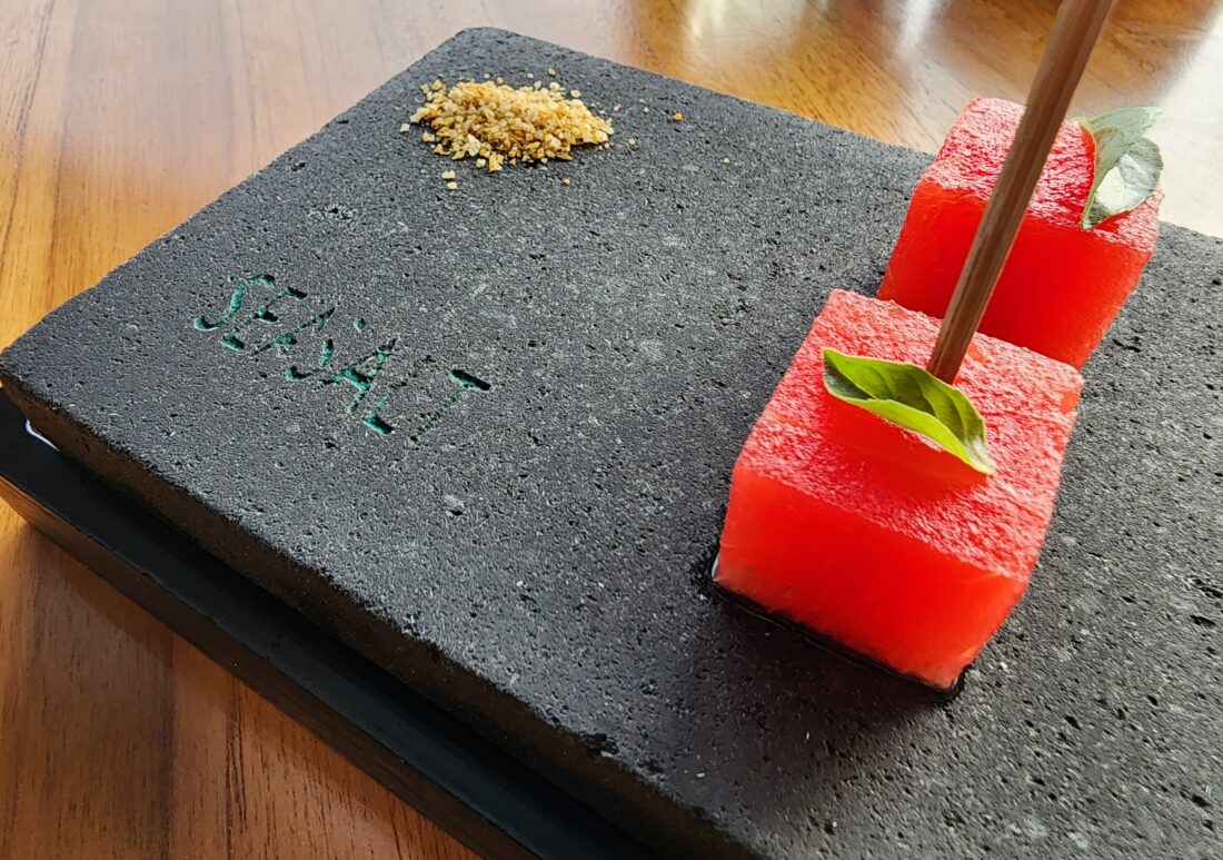 We were told by the waiters that a small but thriving community of salt farmers from East Bali farm the traditional organic Kusamba sea salt by utilising both sun and sea breeze evaporation techniques. The Kusamba salt is then used to season the flavourful seafood dishes at Seasalt. Additionally, the Kusamba forms part of a unique dining ritual whereby house-made Nori seaweed butter is being ceremoniously revealed in an elaborate fashion where the servers crack open a large rock mount cluster of black lava salt encasing the seaweed butter using a wooden pick hammer. The best part of it all? This bonus Instagrammable table service is completely complimentary!