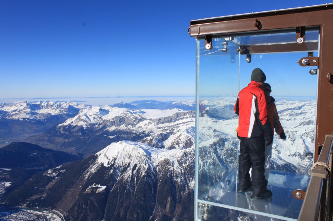 Take the Aiguille du Midi cable car to the highest of the Aiguilles de Chamonix and witness a breathtaking viewpoint offering 360° views of all the French, Swiss and Italian Alps. For an even better view, step into a 2.5m glass cage (as seen above) set out over a 1000m precipice.