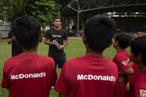 At the end of each clinic, the World Cup excitement continued with a special treat at McDonald’s – where they enjoyed McDonald’s meals and watched the ‘live’ screening of a World Cup match, in addition to being regaled by the freestyle skills of one-time Singapore champion Daryl Low.