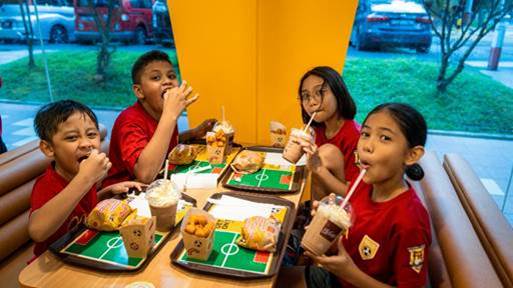 Children enjoying their McDonald’s meals as they watched a World Cup screening in the restaurant
