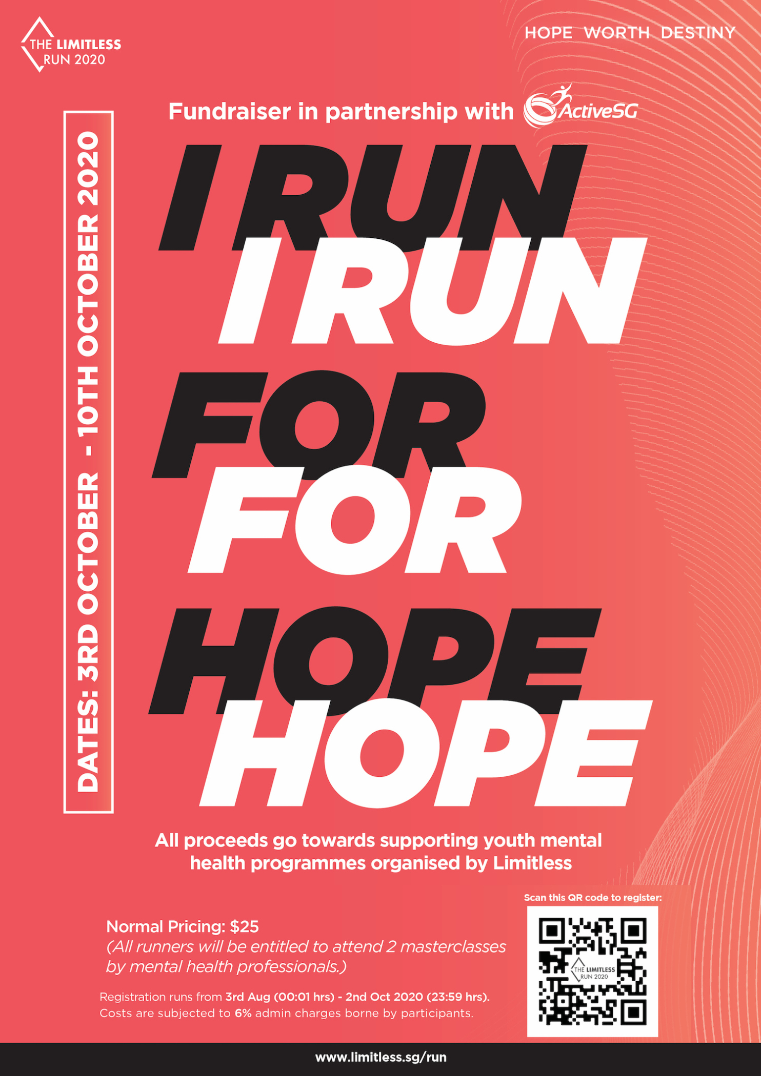 Therefore, Limitless has launched The Limitless Run, a virtual run with the aim to build awareness for mental health in Singapore and to raise funds.